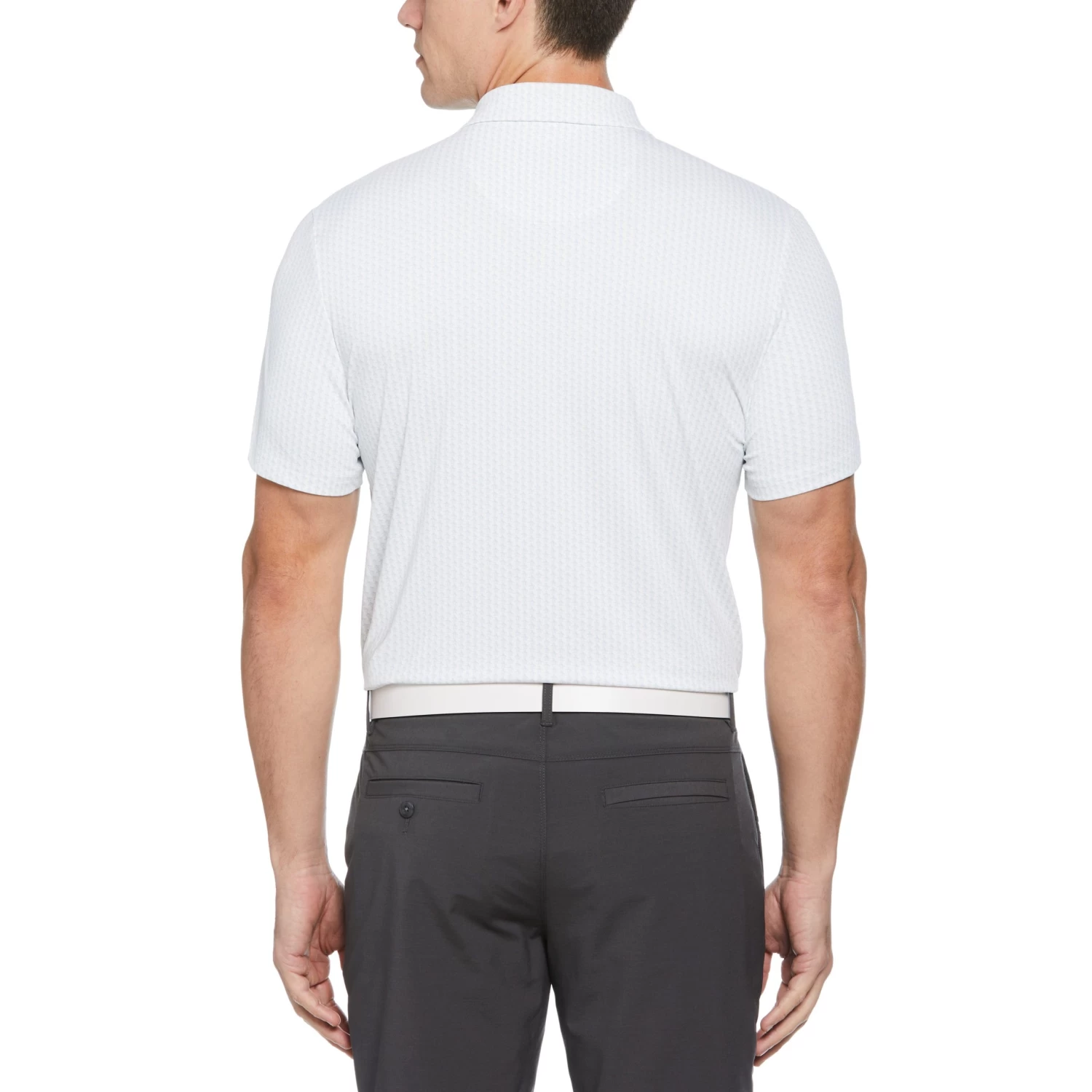 Pete’s here, there and everywhere for you when you hit the golf course in this Original Penguin performance golf polo. This men’s golf shirt looks extra sharp with a contrasting allover mini Pete print and classic self-collar with 3-button placket. Sustainable single knit fabrication made with 90% recycled polyester creates a lightweight, comfortable golf top you can feel good in. A Chi Chi Rodriguez Pete logo makes this unique golf shirt a true original.
