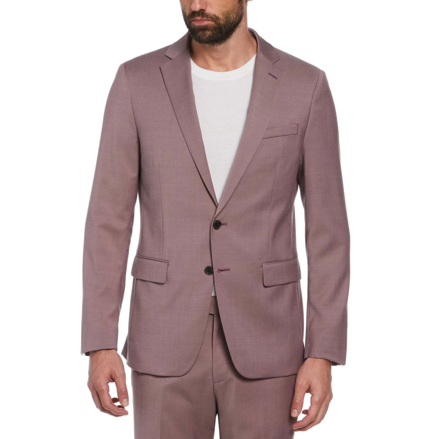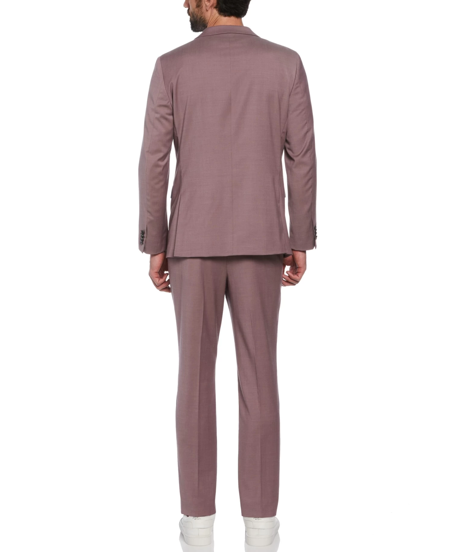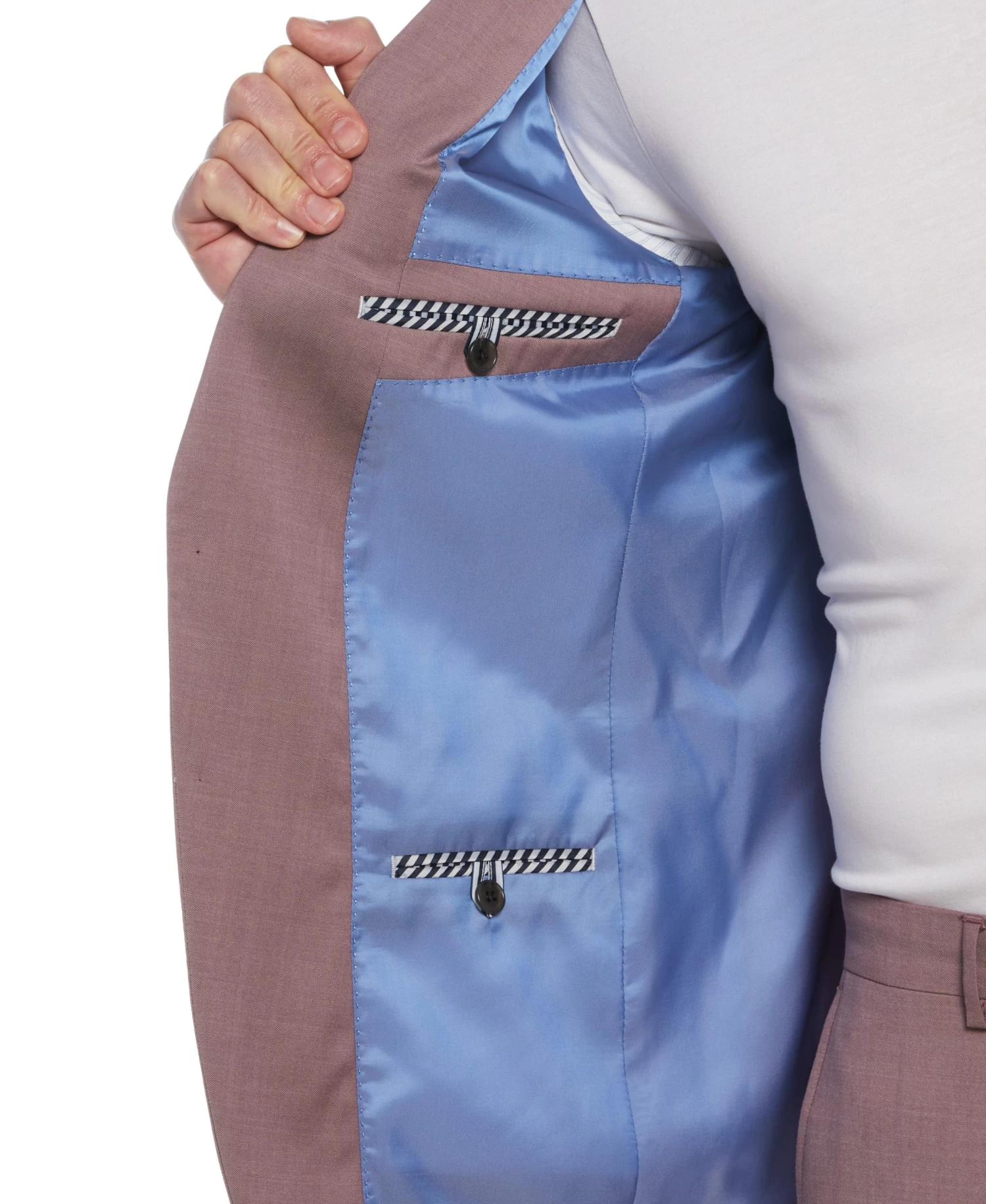 Crafted from a lightweight, textured wool blend fabric, this Original Penguin two-piece suit is perfect for the modern man. The suit jacket has a two-button front closure and classic notched lapels, and it’s fully lined on the interior for added comfort. Straight flap pockets and four interior pockets help to keep your belongings secure, while a welt chest pocket lets you add a pocket square for a bold pop of color. The suit pants feature a flexible stretch waistband, with a zipper fly and button closure. Available in a rich blue color that’s both eye-catching and easy to match with a wide variety of other tones, this two-piece suit will help to keep your look polished and professional.