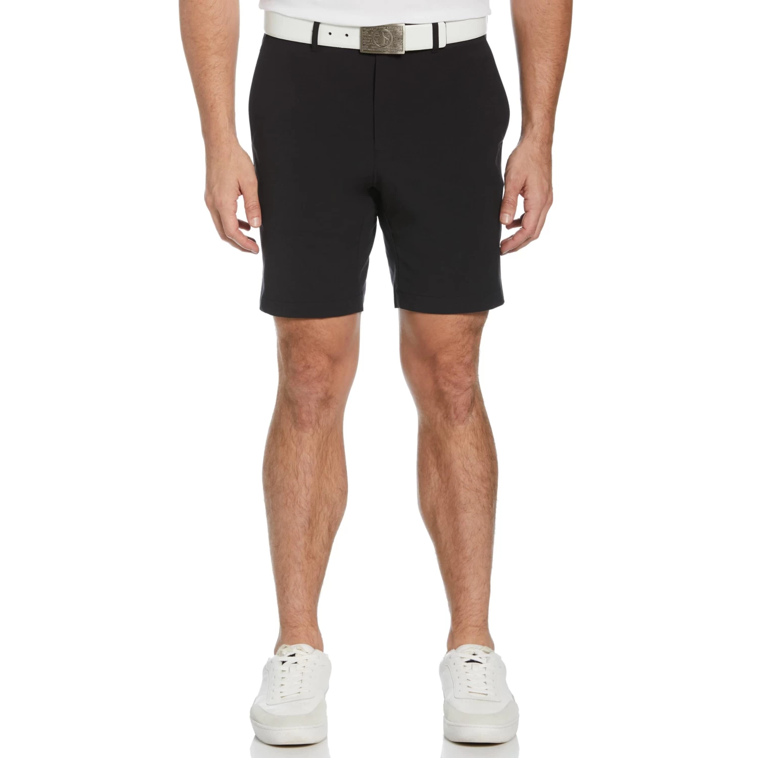 Keep your cool confidence going on the golf course in these performance golf shorts from Original Penguin. The solid-colored men’s shorts have a sleek flat front and slim design for a modern look. With 4-way stretch, you can bend and move in total comfort for a full range of motion. Moisture wicking keeps you dry when your game heats up. Plain weave fabrication makes these shorts a durable choice for regular wear on or off the course.